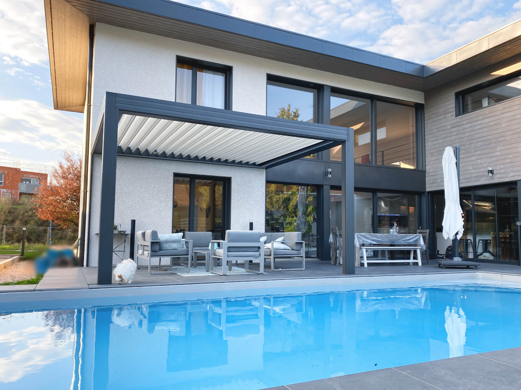 Réalisation d’une pergola bioclimatique adossée à Bon-en-Chablais (74)