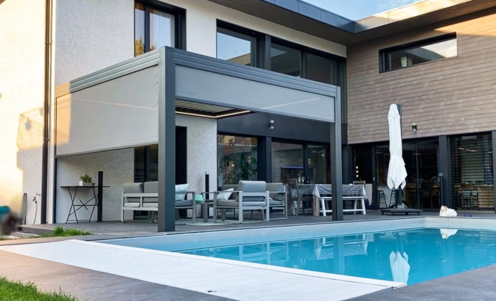 Projet en Haute-Savoie : une pergola bioclimatique adossée sur mesure