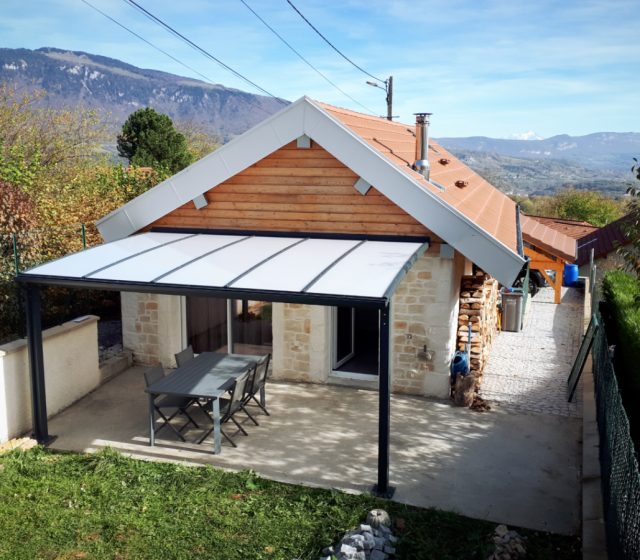 Une nouvelle réalisation de pergola sur-mesure à Gex, dans l’Ain (01), proche de la frontière Suisse. Il s’agit cette fois d’un modèle avec une toiture en Polycarbonate, un matériau particulier, aux nombreuses qualités, que nous évoquerons au cours de cet article.